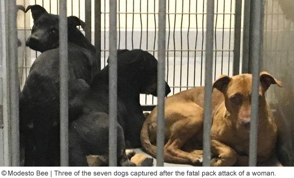 Deborah Onsurez, 56-years old, was killed by a pack of dogs. At 7:50 am, Stanislaus County sheriff's deputies and emergency personnel were dispatched to the 500 block of Crows Landing Road after a report of an unresponsive person. When they arrived, they found the lifeless body of Deborah Onsurez in the driveway of a business. She had severe injuries to her body and was pronounced deceased at the scene. The preliminary investigation led detectives to believe that stray dogs killed her. Authorities captured seven dogs they identified from surveillance cameras from businesses near the attack site. The dogs were captured on surveillance cameras after the attack; the attack itself was not captured. Stanislaus Animal Services Agency Executive Director Annette Patton said the dogs, "were very aggressive" and "one of them had to be chemically captured." The seven dogs, of which only five were still alive, were a variety of mix-breeds, including: Australian cattle dog (heeler), doberman pinscher, German shepherd, Labrador retriever and pit bull. [source citations]