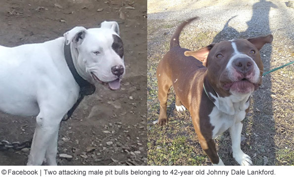 Lorraine Saylor, 66-years old, was killed by two pit bulls on Christmas Eve. Bell County sheriff's deputies responded to a dog attack on Wiser Branch Road about 10:20 am. Upon arrival, they found a woman and her husband had been "savagely attacked by two pit bulls." Earlier that morning, Johnny Saylor woke up and looked for his wife. When he went outside, two dogs attacked him. His brother James Saylor lives next door. He ran over when he heard the attack and threw a doorstop at the dogs to distract them. Johnny grabbed a pistol and shot both dogs, killing one, the other fled. He then found his wounded wife on the ground. Bell County Coroner Jay Steele said she suffered massive injuries on her neck, face and shoulder. She was declared dead at the scene. The dogs' owner, Johnny Dale Lankford, 42, was being held at the Bell County Detention Center on unrelated charges of domestic assault and unlawful imprisonment at the time. He was charged with harboring a vicious animal. One week later, Lankford pleaded guilty and was sentenced to one year in jail. [source citations]