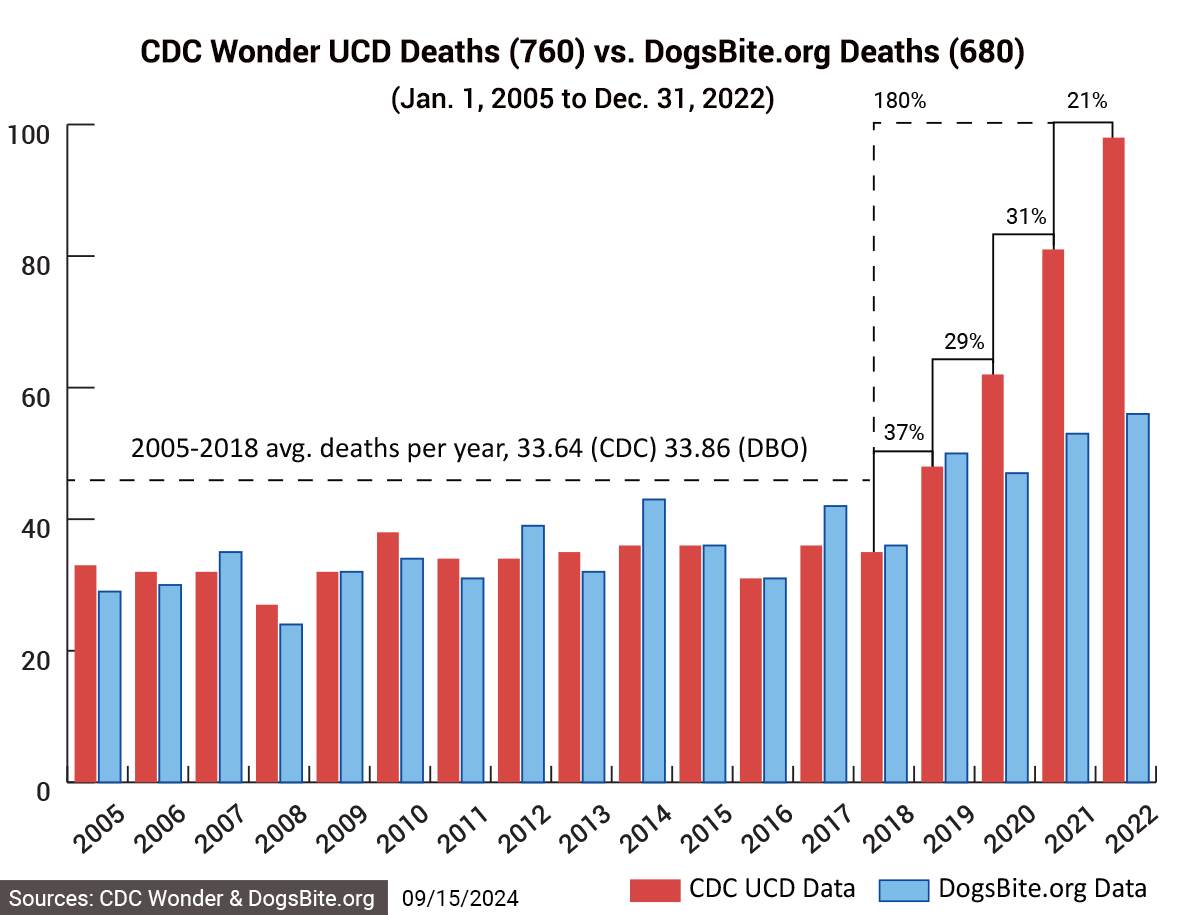 View national dog bite fatality statistics, reports and trends by DogsBite.org.