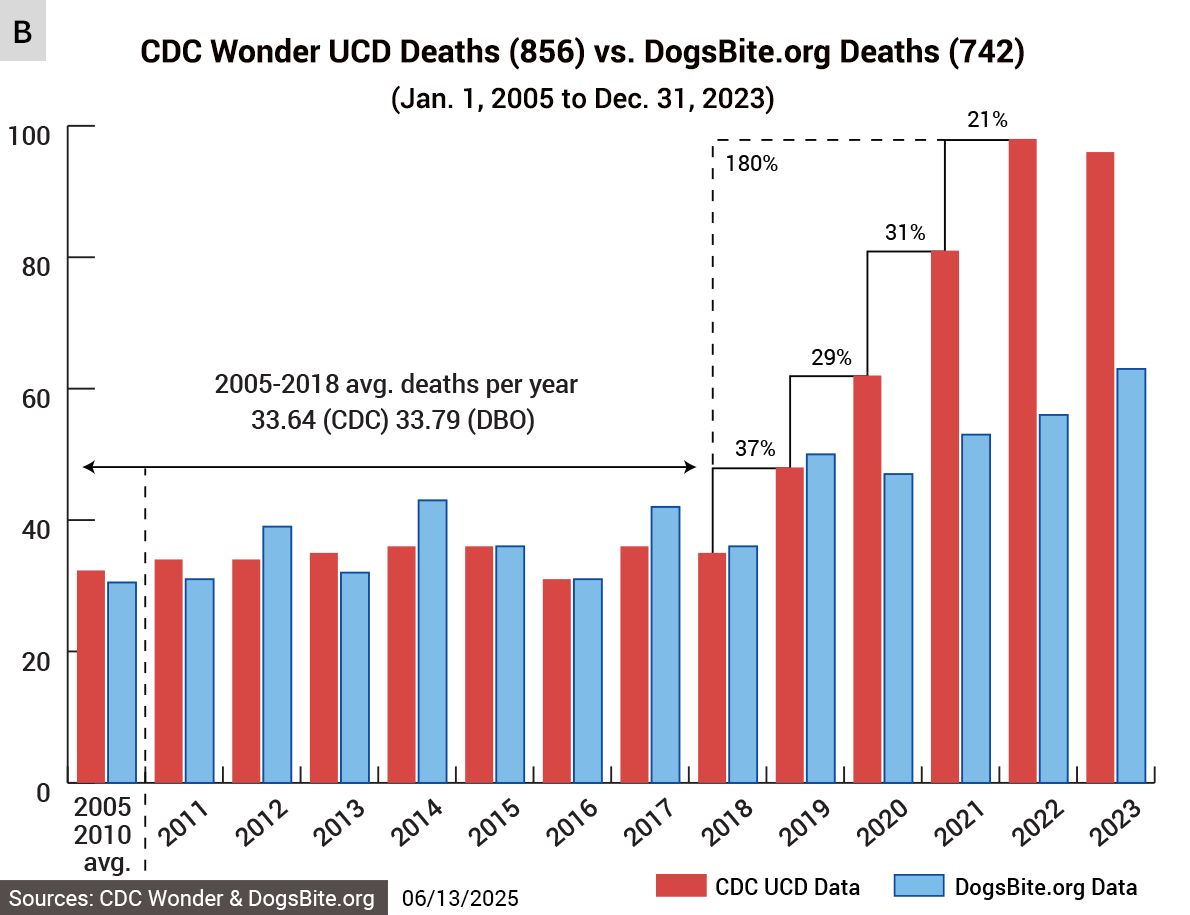 Review the most recent national dog bite fatality statistics, including combined-year charts and state pit bull fatality maps and successful restricted breed law statistics, studies and reports.